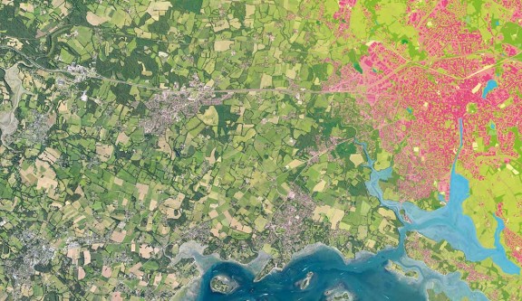 Sur cette prise de vue aérienne exploitant le proche infrarouge, on distingue plus nettement la nature de la végétation.
